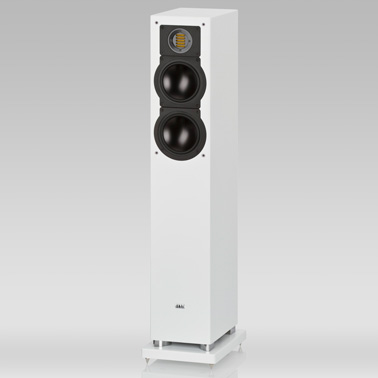 A pair of luxury floor speakers with a diameter of "7 model : FS 507VX-JET from ELAC , made in Germany