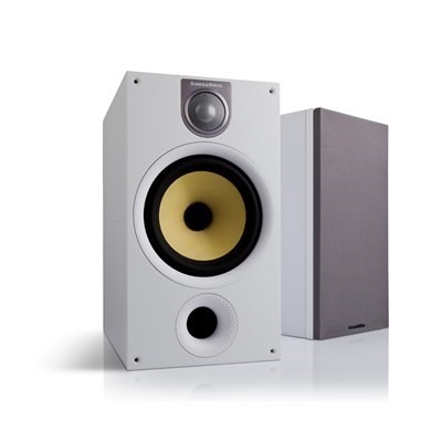 A pair of B&W CM5 bookshelf speakers from display