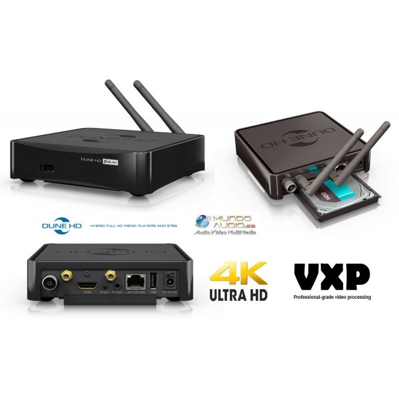video, high-quality audio, IPTV and VOD content, digital TV channels. Supporting most digital audio and video formats, including the most modern HEVC video codec with the support for 1 billion of colors (10-bit color encoding), all modern 3D video standards such as MVC, SBS and TnB, audiophile HD audio with high resolution up to 24-bit /192 KHz, Dune HD Solo 4K sets an entirely new standard. Dune HD Solo 4K is equipped with two USB ports, an internal 2.5” SATA HDD bay, 1Gbit Ethernet, 802.11ac Dual Band 2T2R Wi-Fi.